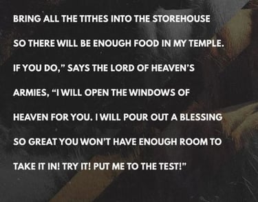 God calls us to give the first 10% of our income back to Him. In fact, it is the one area of the Bible that He tells us to test Him.
